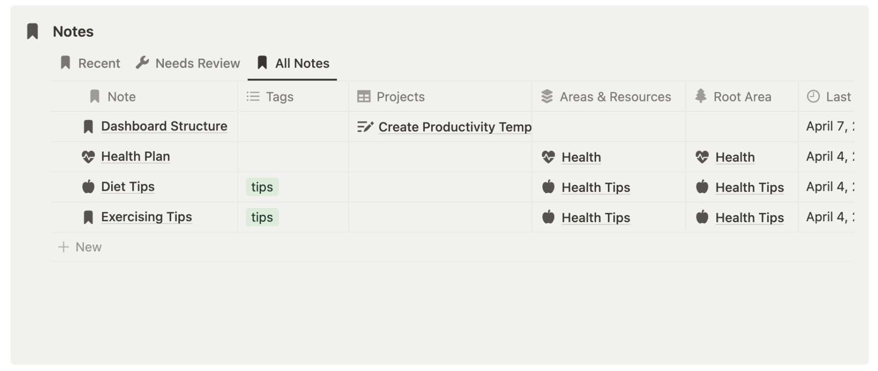 - Resources: This category is for information that you think might be useful to keep for future reference but doesn’t belong in your active projects or areas. Common resources include articles, ideas, notes, and other reference materials.